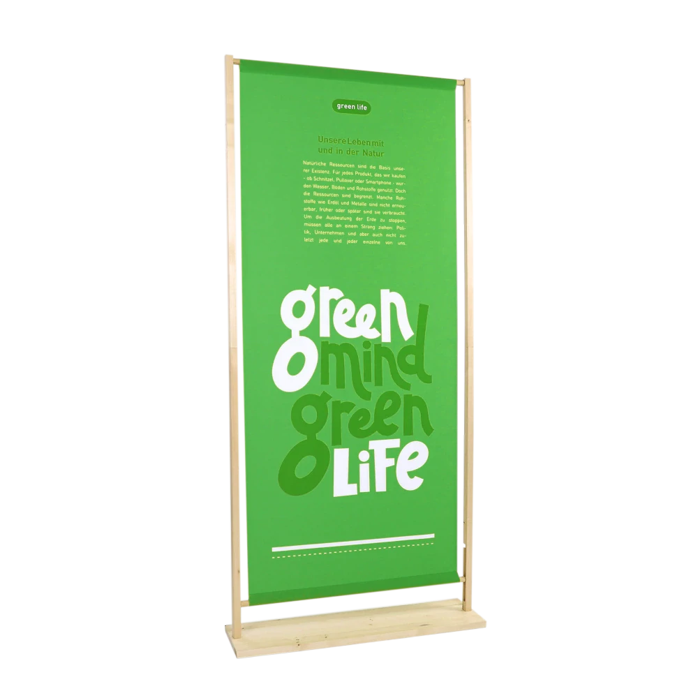 Dřevěný banner stojan WoodBoarder snadno složitelný tisk na látku, blockout (bílá záda)Skladem6 564 Kč/ ks5 425 Kč bez DPH